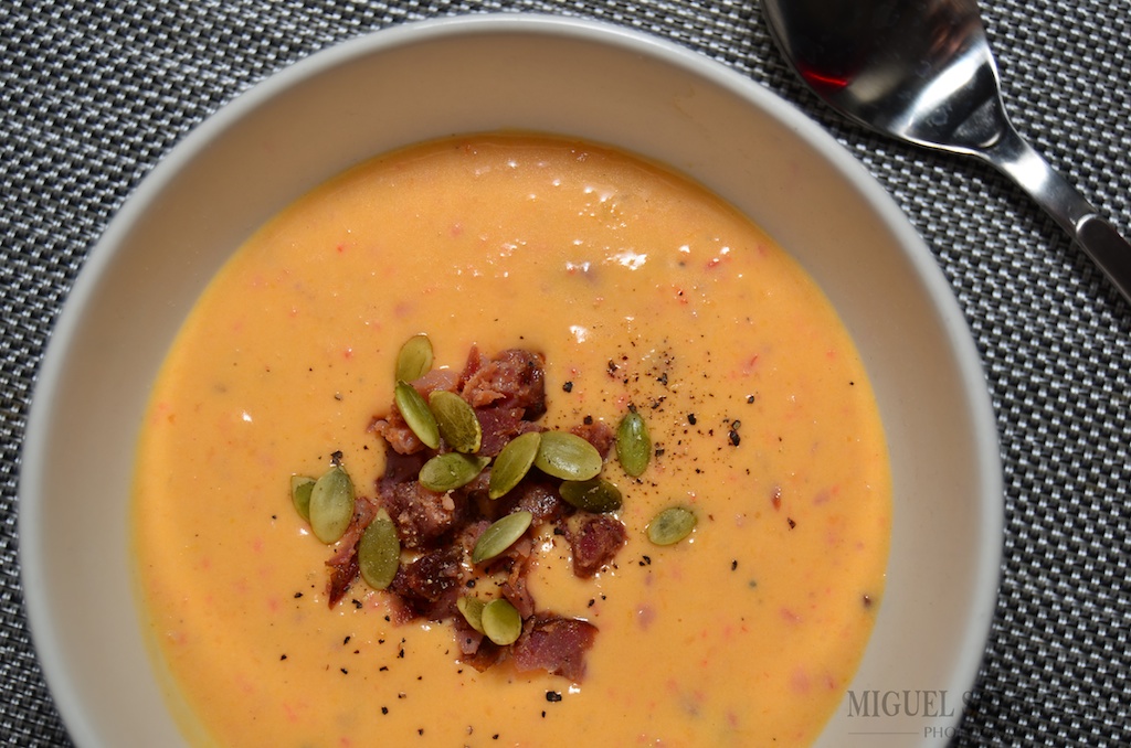 It’s no secret that bacon goes well with everything, but it goes really well with the butternut squash and potato base for this chowder. And I’m calling it a chowder because it’s thicker than most soups. Enjoy!