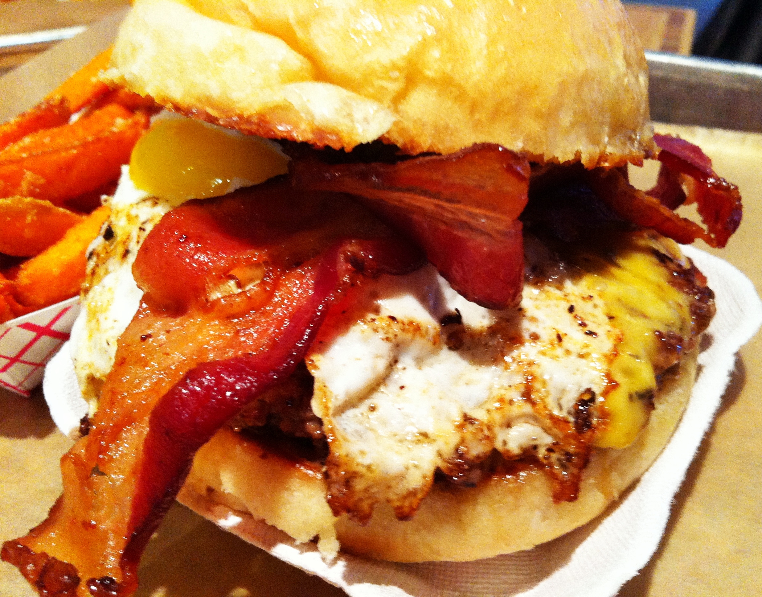Normally, I immediately recommend the burgers. But I have to give proper service to Tru Burger’s corn dog. It’s hand-dipped in a batter that fries to a cakey texture that’s moist and crispy all at once. I like my corn dogs with mayo, something some people say is odd, but I’ve liked it since I was a kid.