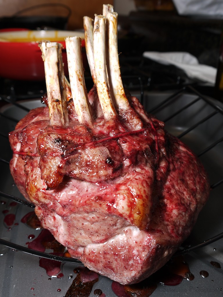 - Whisk together 1/2 cup olive oil and garlic paste in a large roasting pan. Add the pork and turn to coat. Cover and marinate in the refrigerator for at least 8 hours and up to 24 hours. Remove from refrigerate 30 minutes before ready to cook.
